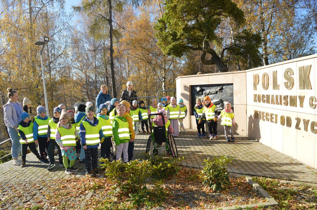 Podczas spaceru dzieci poznawały historię miejsc, które przypominają o przeszłości, ucząc się, że wolność i pokój, w jakich dziś żyjemy, są darem, o który wielu musiało walczyć.