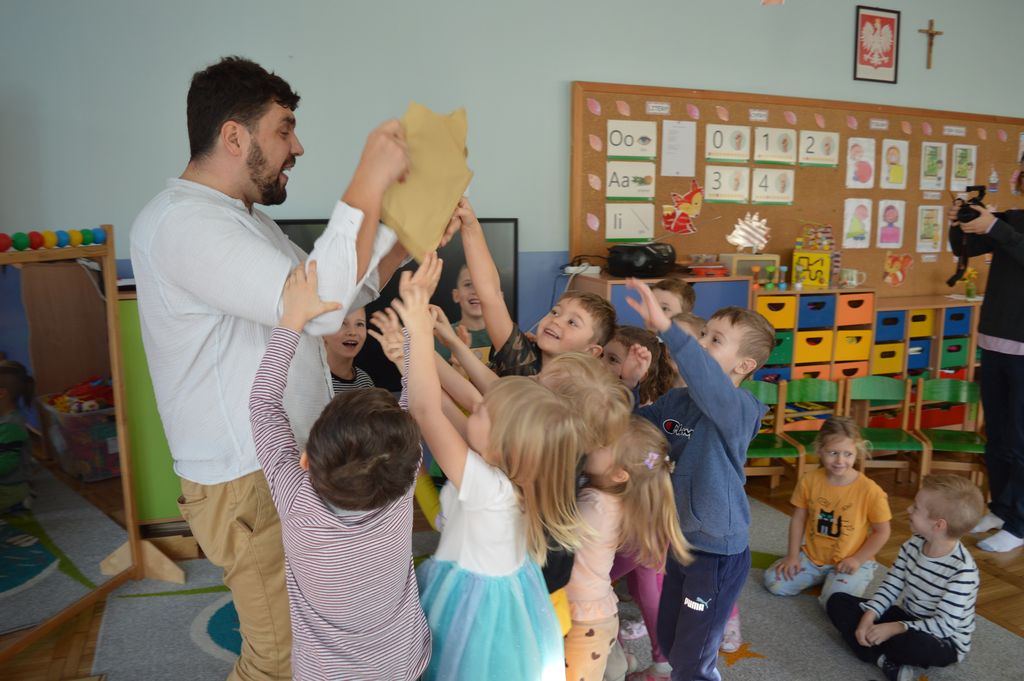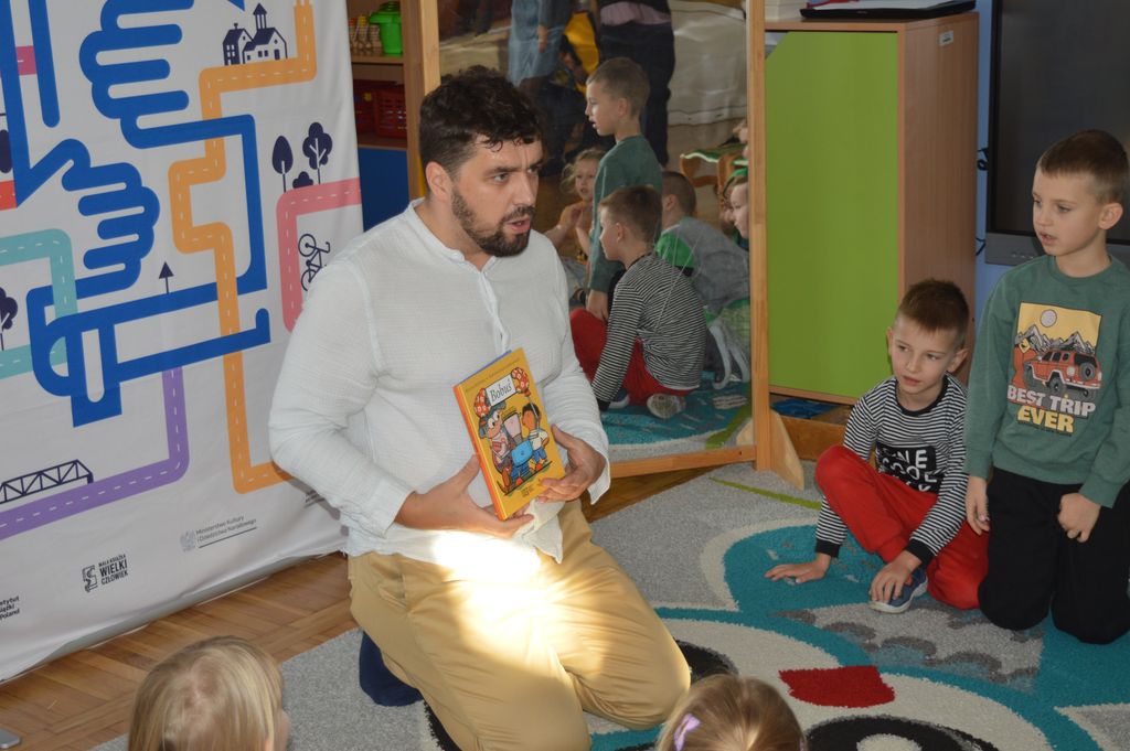 Prowadzący z niezwykłą lekkością łączył zabawę z nauką, zachęcając najmłodszych do myślenia, słuchania i kreatywnego działania. Każda historia stawała się pretekstem do odkrywania emocji, rozmowy o przyjaźni i marzeniach.