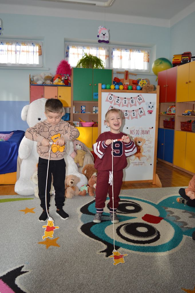 Podczas zajęć przedszkolaki miały okazję poznać historię powstania pluszowego misia, a także wziąć udział w różnorodnych aktywnościach tematycznych. Na dzieci czekały zabawy przy muzyce, radosne pląsy, misiowe wróżby oraz liczne zadania ruchowe i integracyjne z udziałem ich ukochanych pluszaków.