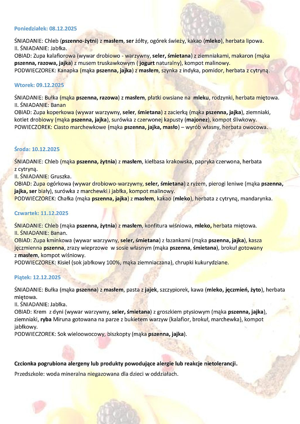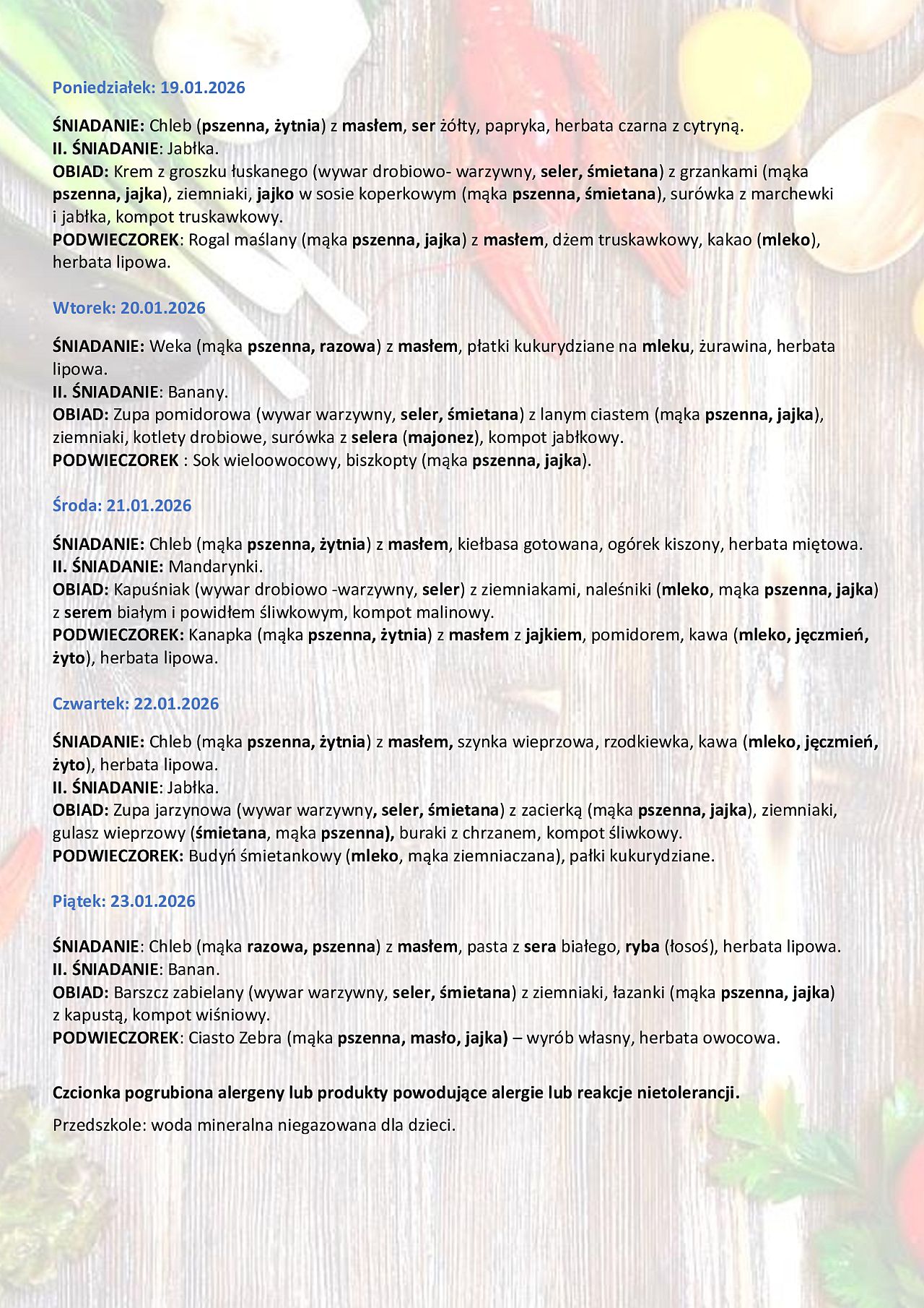 Stołówka - jadłospis